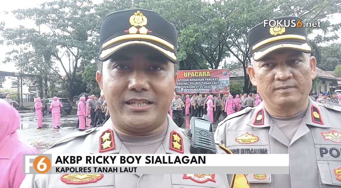 Kapolres Tanah Laut AKBP Ricky Boy Siallagan menegaskan kenaikan pangkat bukan sekadar penghargaan atas kinerja. Ia menyebut pangkat baru itu juga membawa amanah yang harus personel emban dengan profesionalisme dan integritas penuh.