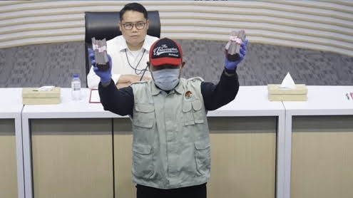 Dalam penangkapan itu, penyidik menyita tas ransel hitam yang diduga berisi uang tunai sekitar Rp850 juta sebagai barang bukti.