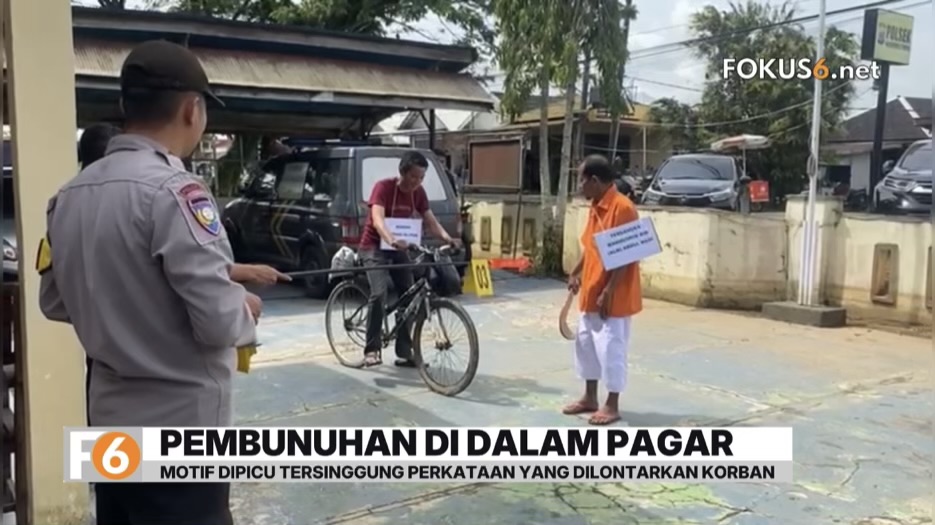fokus6.net, KABUPATEN BANJAR – Polsek Martapura Timur menggelar rekonstruksi pembunuhan Martapura di Desa Dalam Pagar, Kecamatan Martapura Timur, Kabupaten Banjar, Senin pagi. Tersangka Mahmuddin memperagakan 18 adegan mulai dari adu mulut hingga penyerangan terhadap korban Badrani alias Atak.