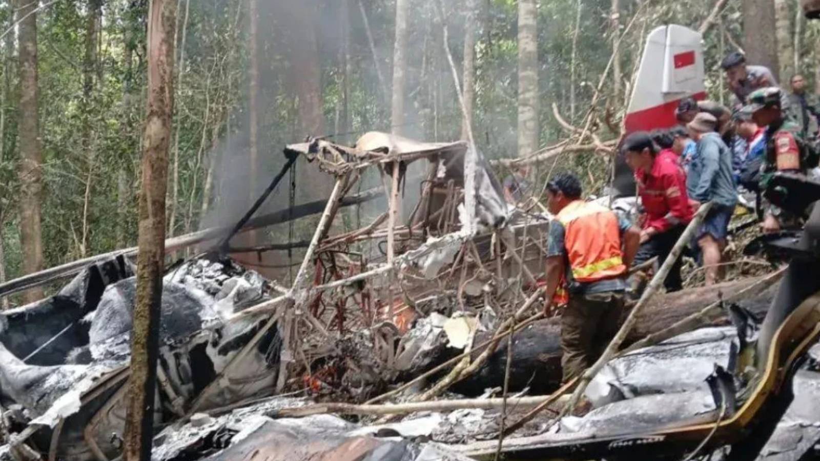 Petugas mendapati bangkai pesawat dalam kondisi hangus terbakar dan terdapat korban jiwa di lokasi kejadian.