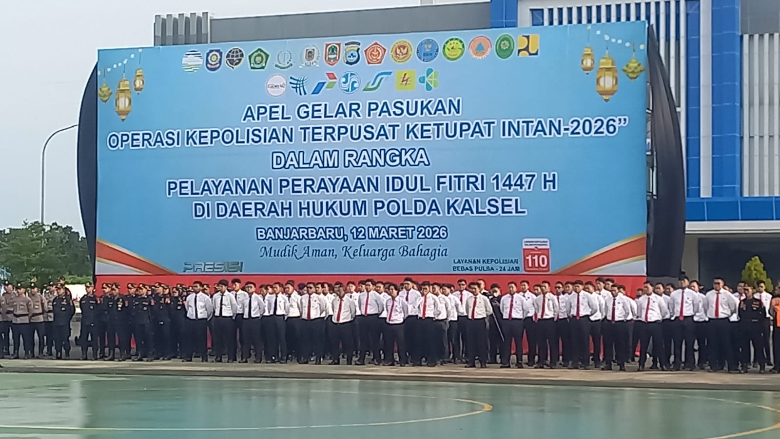 fokus6.net, BANJARBARU – Polda Kalimantan Selatan resmi memulai Operasi Ketupat Intan 2026. Operasi pengamanan Lebaran tersebut ditandai dengan apel gelar pasukan di Lapangan Direktorat Lalu Lintas Polda Kalsel Km 21 Banjarbaru, Kamis, 12 Maret 2026.