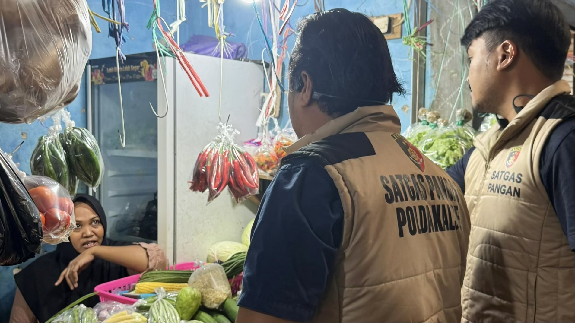 Tim Satgas Pangan Polda dipimpin Kompol Suryanthi bersama sejumlah personel. Mereka mengecek langsung harga komoditas utama di pasar tradisional tersebut.