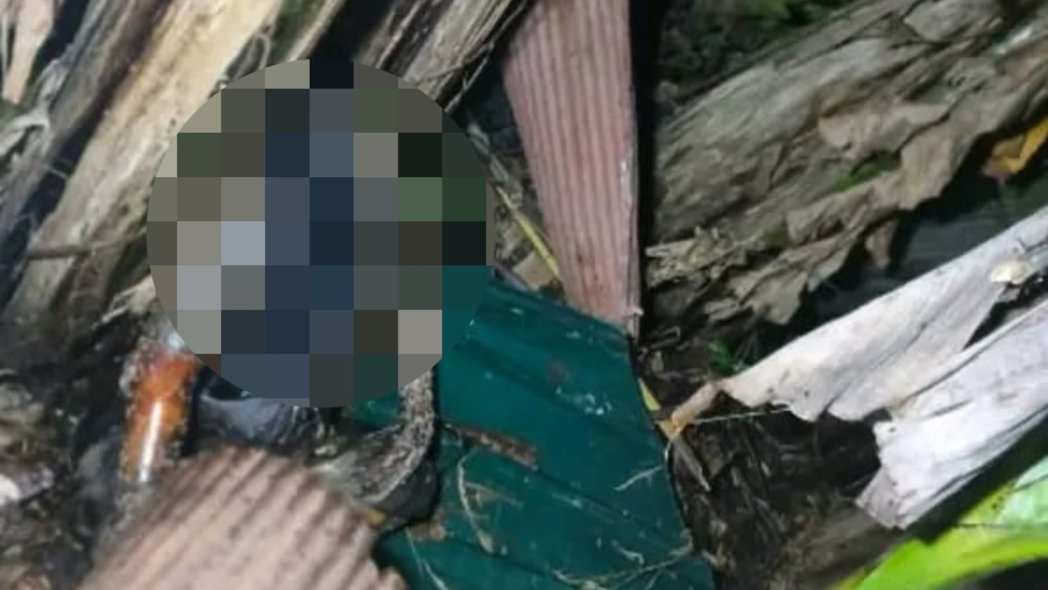 Korban masih mengenakan pakaian lengkap serta kerudung berwarna gelap. Namun kondisi wajah sudah sulit dikenali.