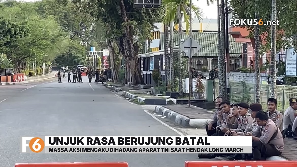 fokus6.net, BANJARMASIN — Rencana unjuk rasa mahasiswa dan warga ke DPRD Kalimantan Selatan berujung batal. Massa aksi mengaku dihadang aparat TNI saat hendak melakukan long march.