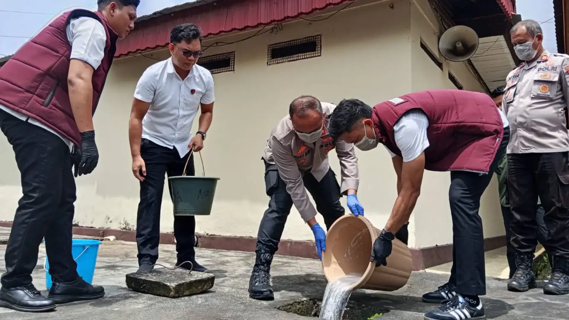 Petugas memusnahkan sabu dengan cara melarutkannya ke dalam air yang dicampur deterjen setelah lebih dulu mengeluarkannya dari kemasan. Cairan itu kemudian petugas buang ke dalam septic tank.