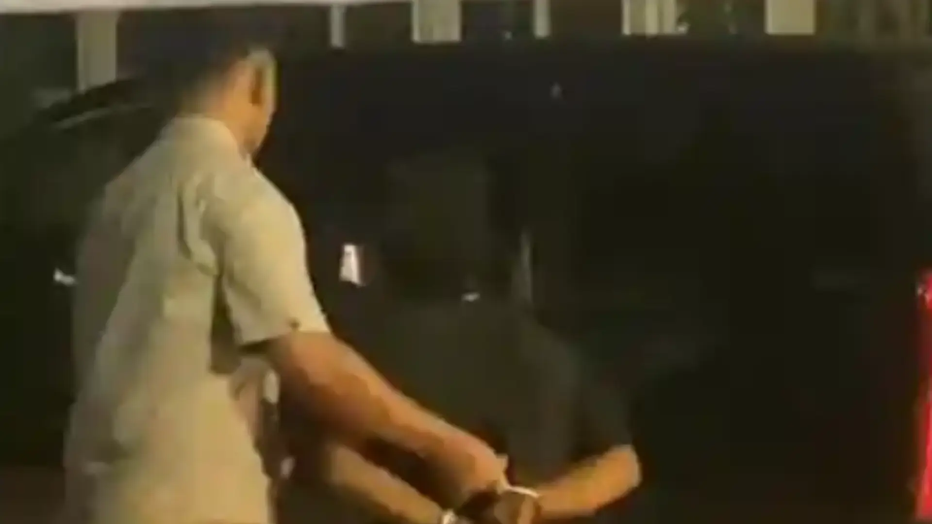 Rekaman memperlihatkan seorang pria dewasa berkaus hitam lengan pendek, celana jeans, berambut keriting tebal, dan mengenakan anting di telinga kanan. Petugas menggiring pelaku dengan tangan terborgol ke belakang di tengah kerumunan warga.